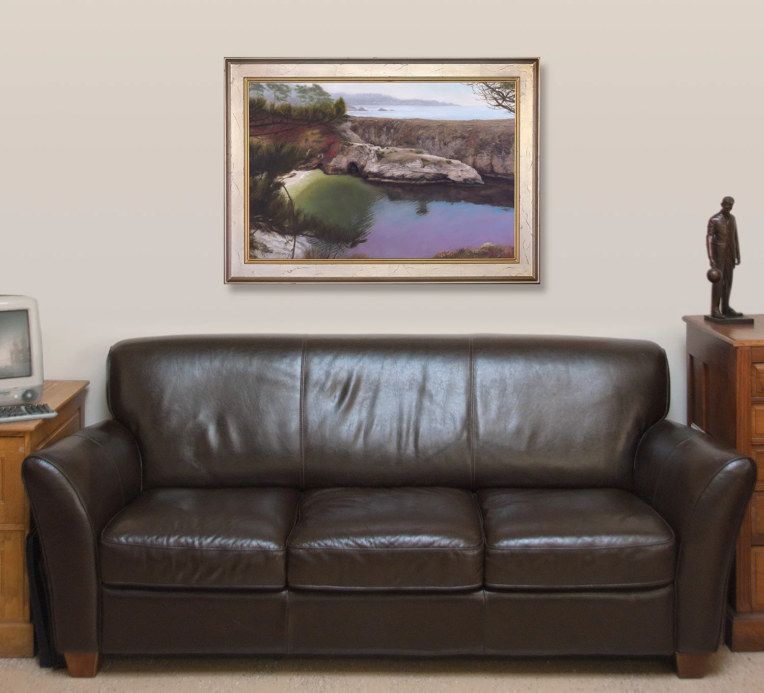 Highly detailed oil painting of China Cove at Point Lobos on Monterey Bay in California.
