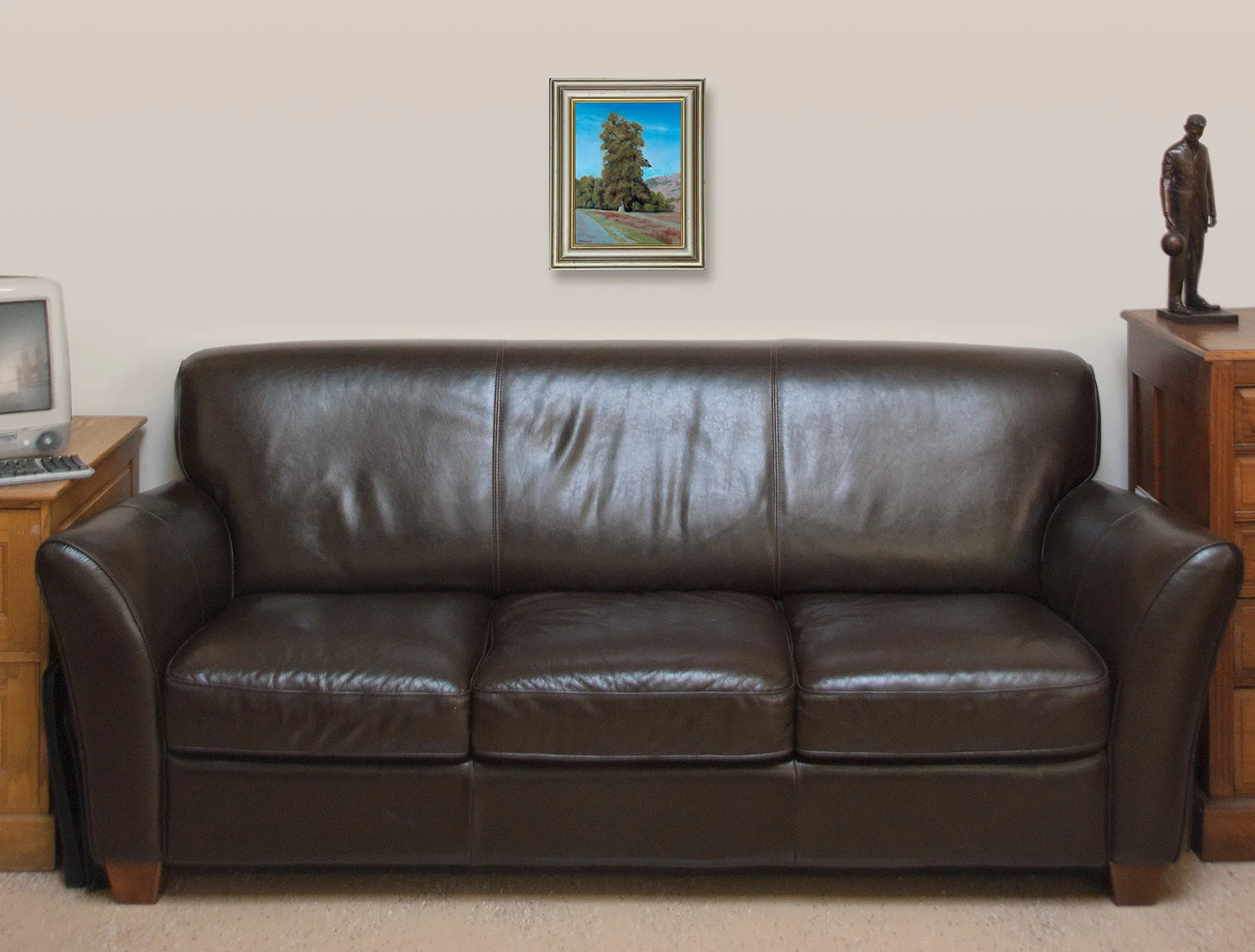 The soft colored hills in the background, the light clouds in the blue sky, the huge central tree and the landscape and road converging in the hidden distance – a balanced glimpse of nature.