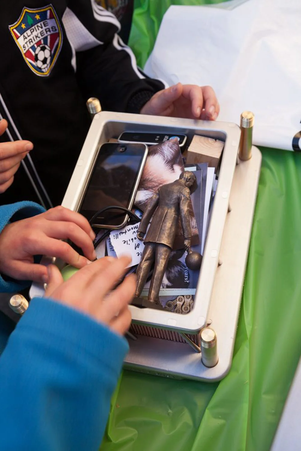 The time capsule was filled with predictions of the future from KickStarter backers and local Silicon Valley school children engineering relics of our times, Tesla bank notes and one of the 6 inch resin statue replicas.